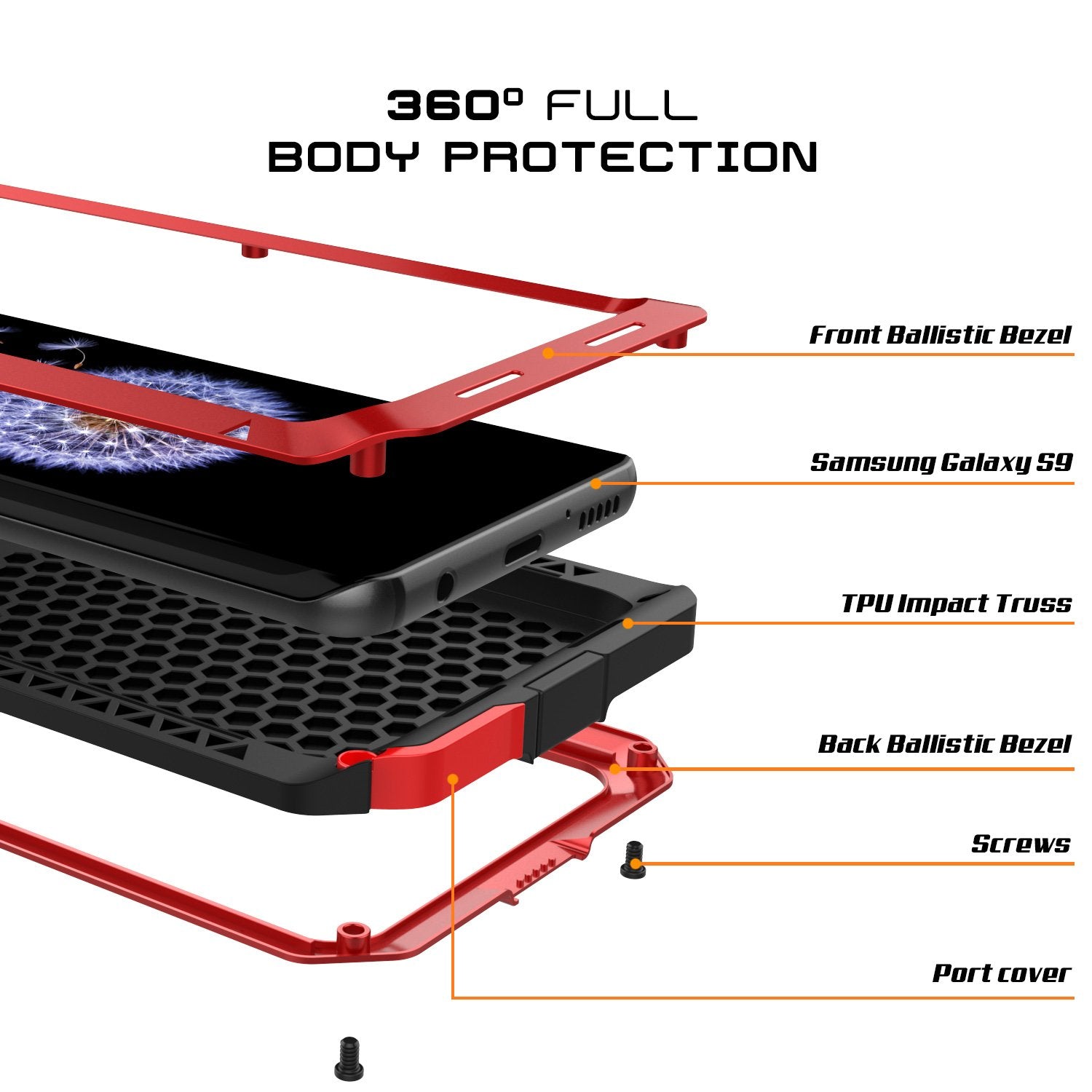 Galaxy S9 Metal Case, Heavy Duty Military Grade Rugged Armor Cover [shock proof] Hybrid Full Body Hard Aluminum & TPU Design [non slip] W/ Prime Drop Protection for Samsung Galaxy S9 [Red] (Color in image: Red)