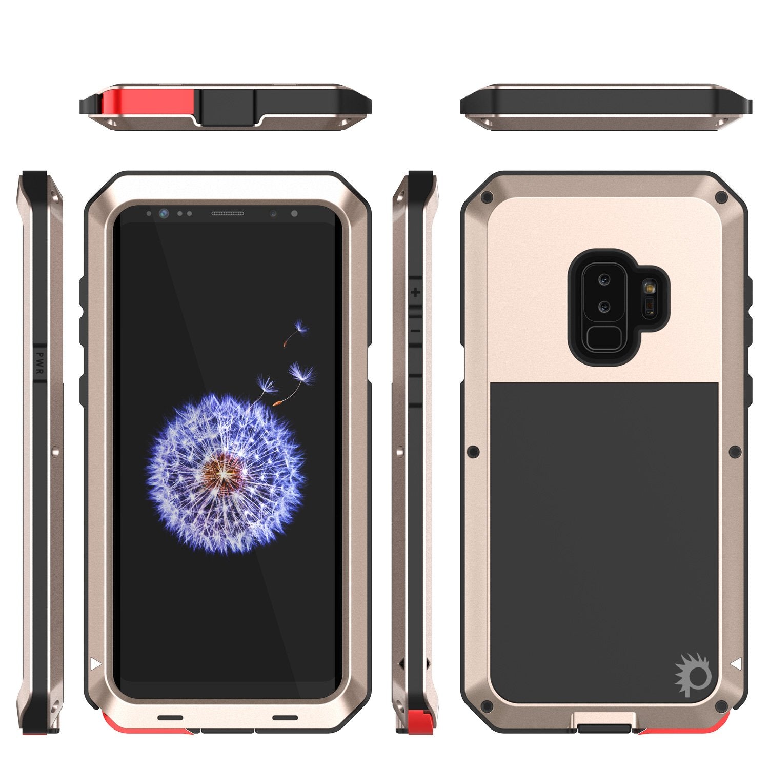 Galaxy S9 Plus Metal Case, Heavy Duty Military Grade Rugged Armor Cover [shock proof] Hybrid Full Body Hard Aluminum & TPU Design [non slip] W/ Prime Drop Protection for Samsung Galaxy S9 Plus [Gold] (Color in image: Red)