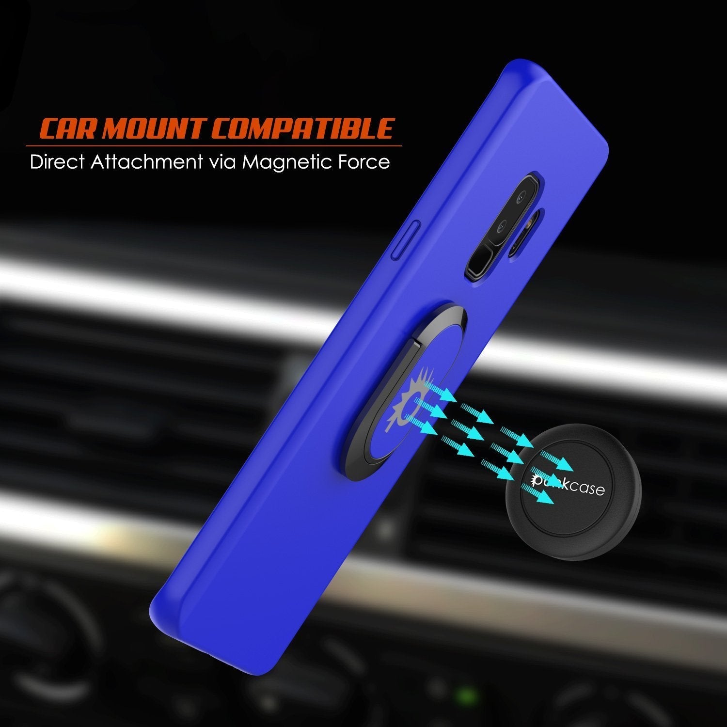 Galaxy S9 PLUS, Punkcase Magnetix Protective TPU Cover W/ Kickstand, Ring Grip Holder & Metal Plate for Magnetic Car Phone Mount PLUS PunkShield Screen Protector for Samsung S9+ Edge [Blue] (Color in image: blue)