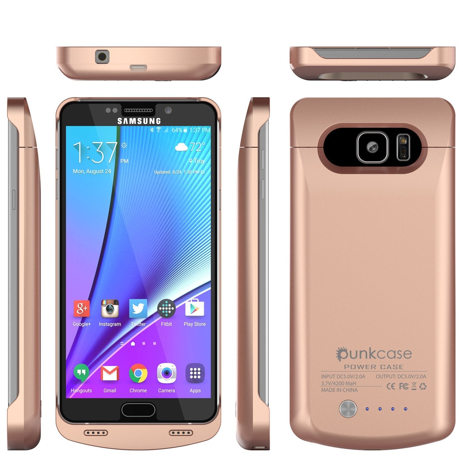 Galaxy Note 5 Battery Case, Punkcase 5000mAH Charger Case W/ Screen Protector | IntelSwitch [Rose Gold] (Color in image: Rose Gold)