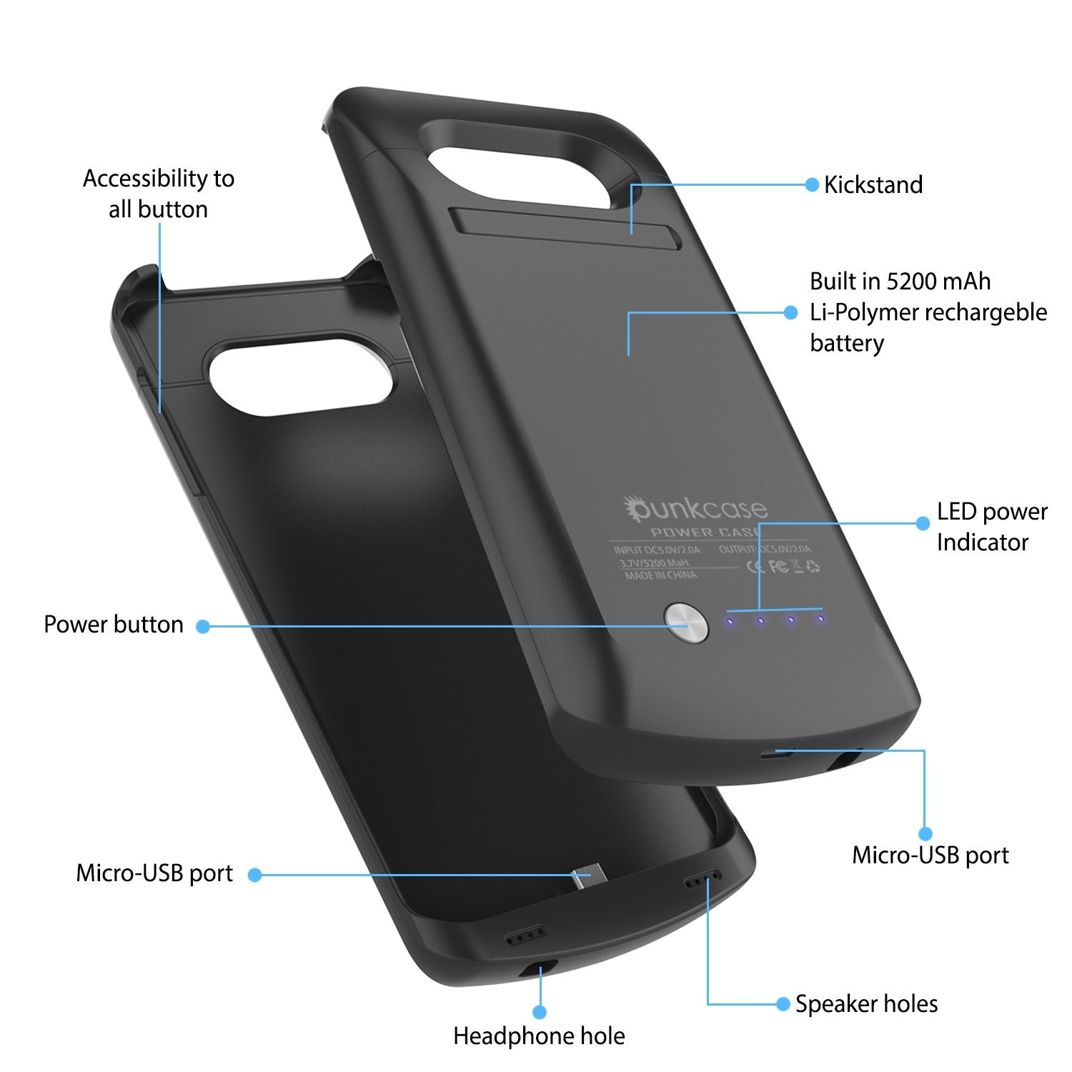 Batería de litio recargable de alta capacidad de 5200mAh: amplía la vida útil de tu batería en un 200%. Tecnología IntelSwitch: al recargar tu funda de batería, tu Galaxy S7 EDGE se cargará PRIMERO, y una vez completada, la carga se cambiará automáticamente a la funda de batería. 10 mecanismos de seguridad incorporados para evitar el sobrecalentamiento y los cortocircuitos en la funda de carga de tu Galaxy S7 EDGE.