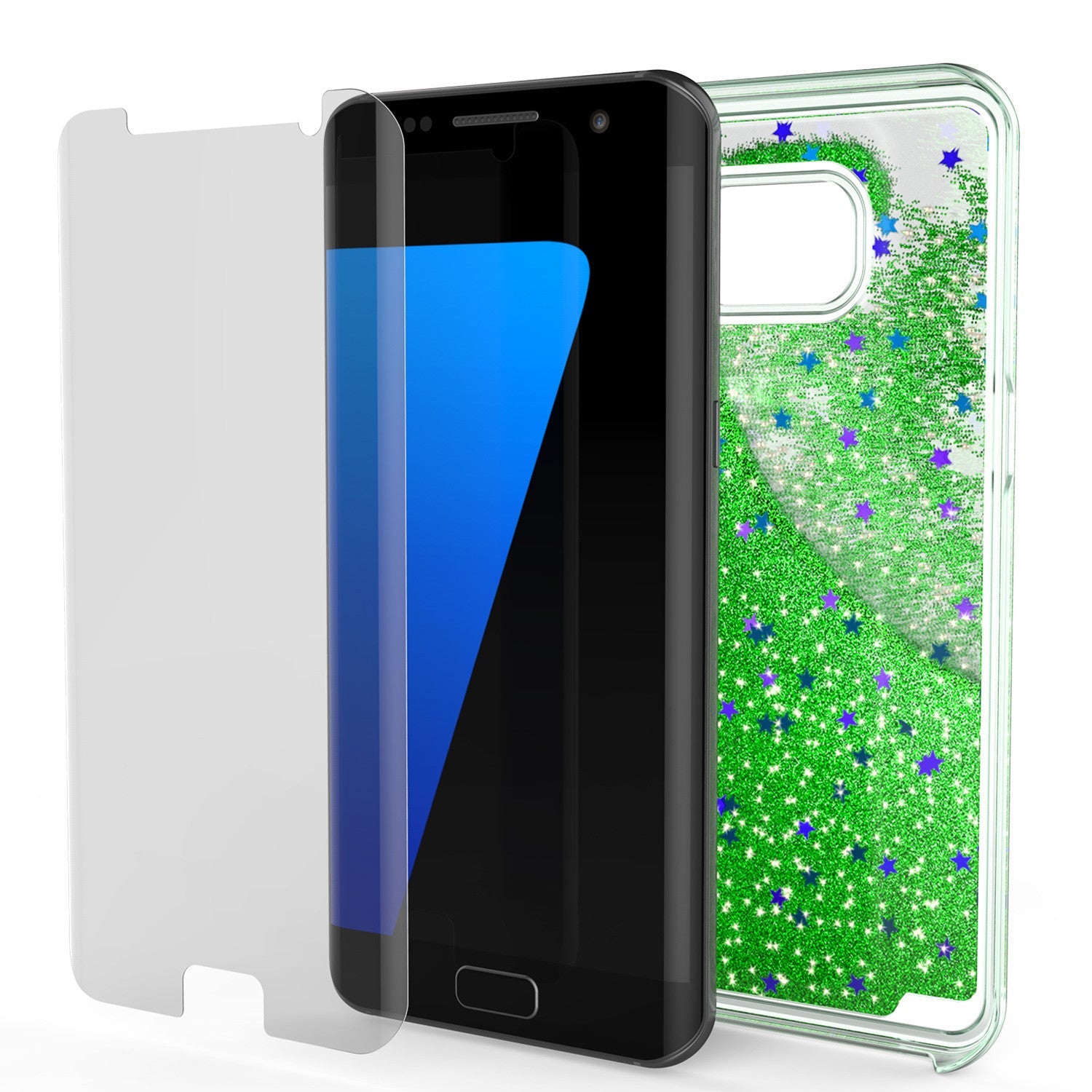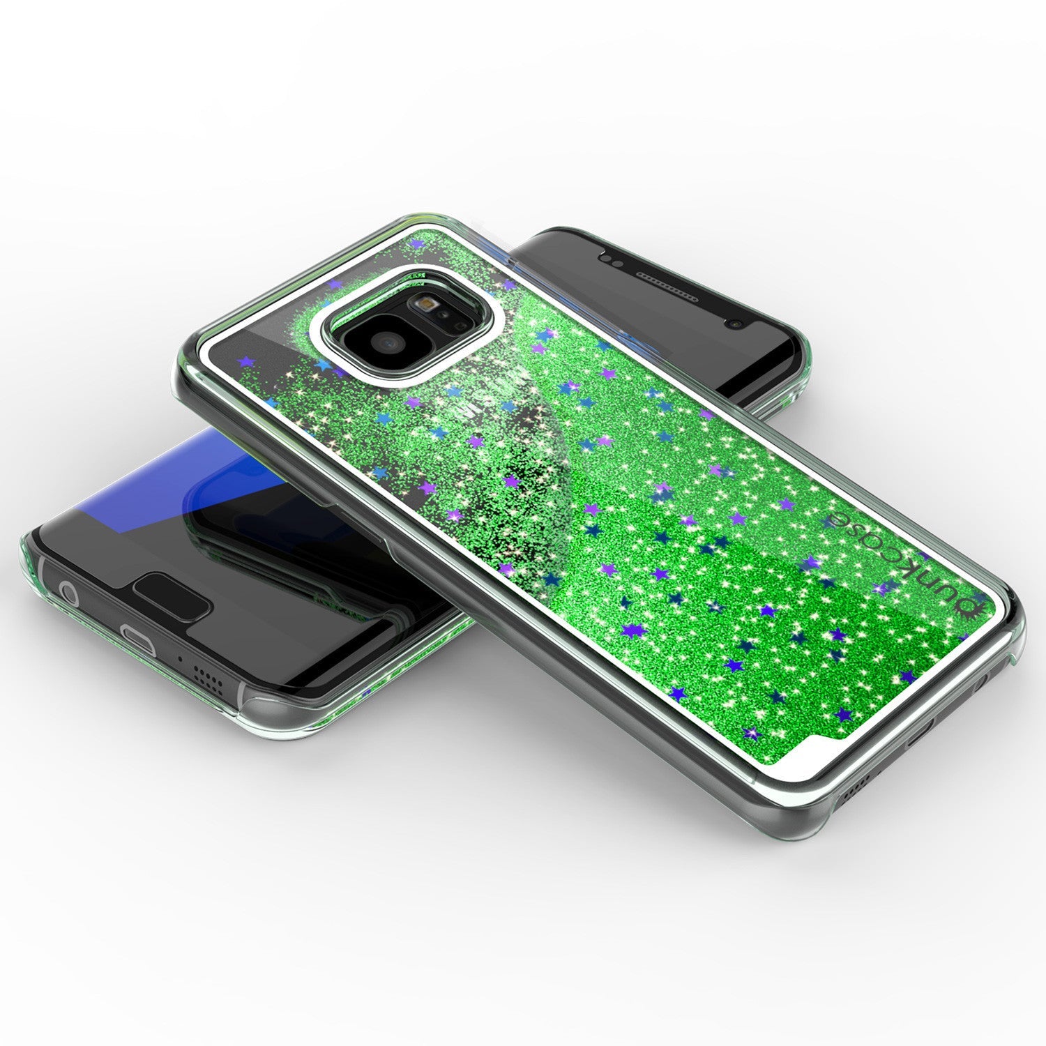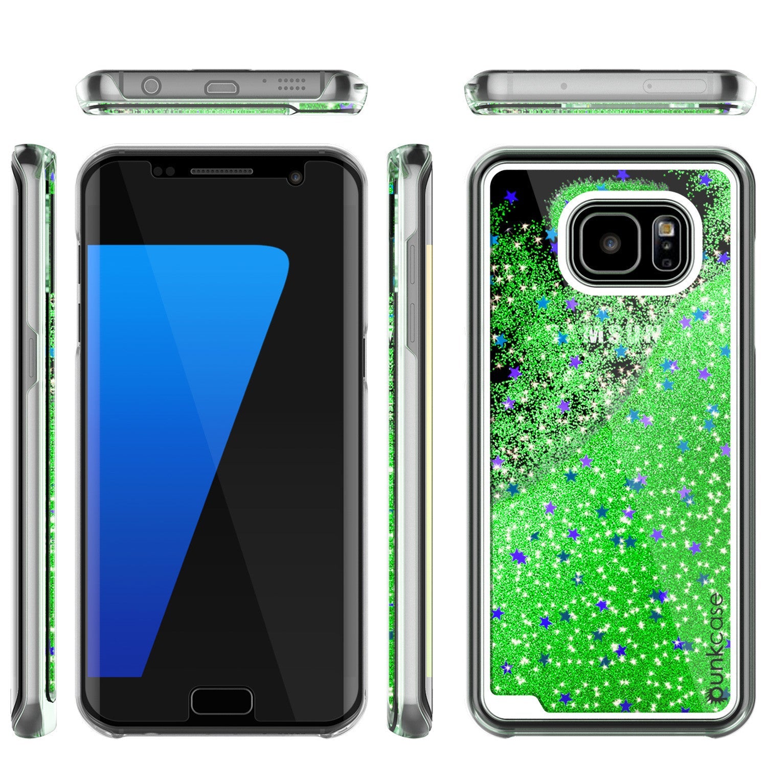 S7 Edge Case, PunkCase LIQUID Green Series, Protective Dual Layer Floating Glitter Cover (Color in image: green)