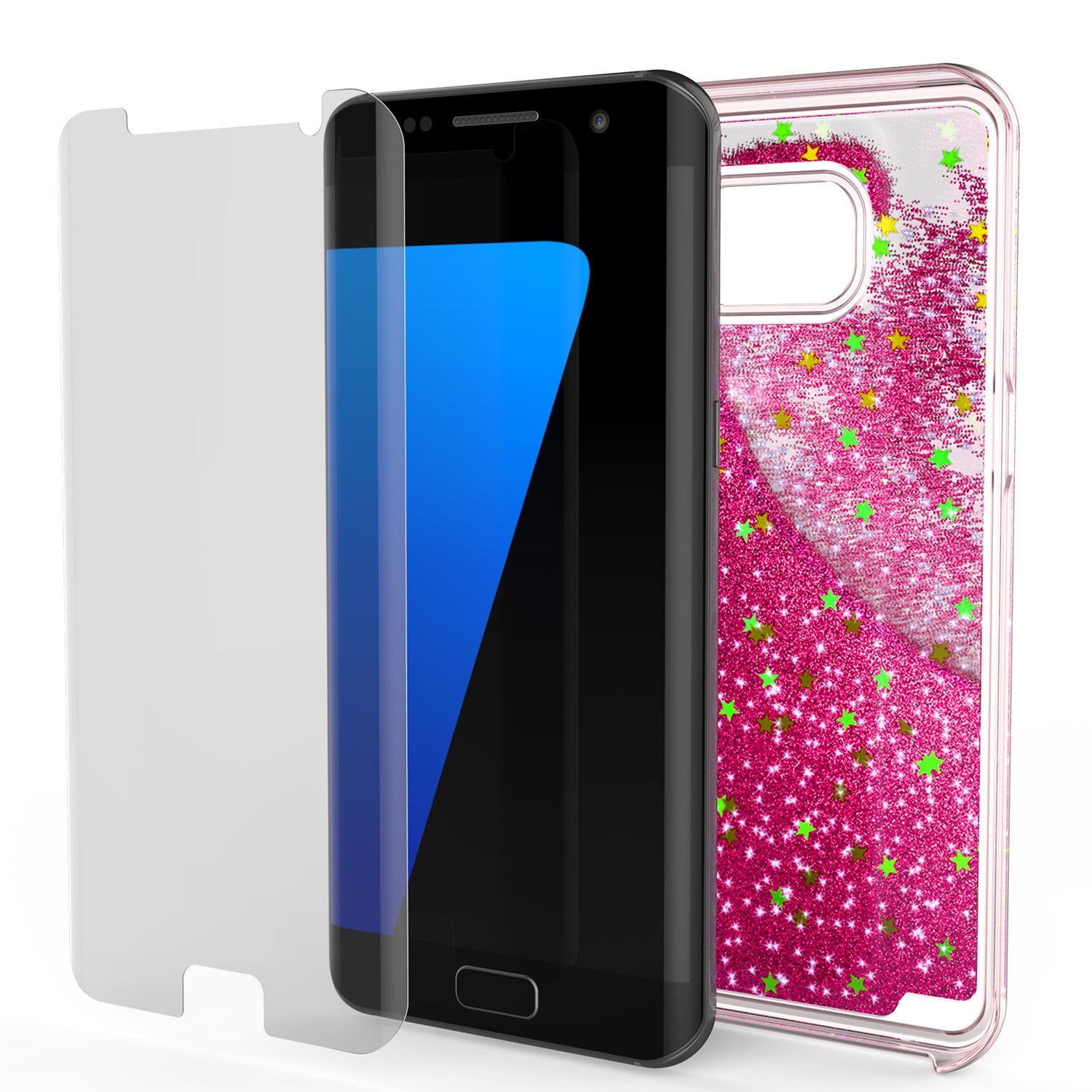 S7 Edge Case, PunkCase LIQUID Pink Series, Protective Dual Layer Floating Glitter Cover (Color in image: pink)