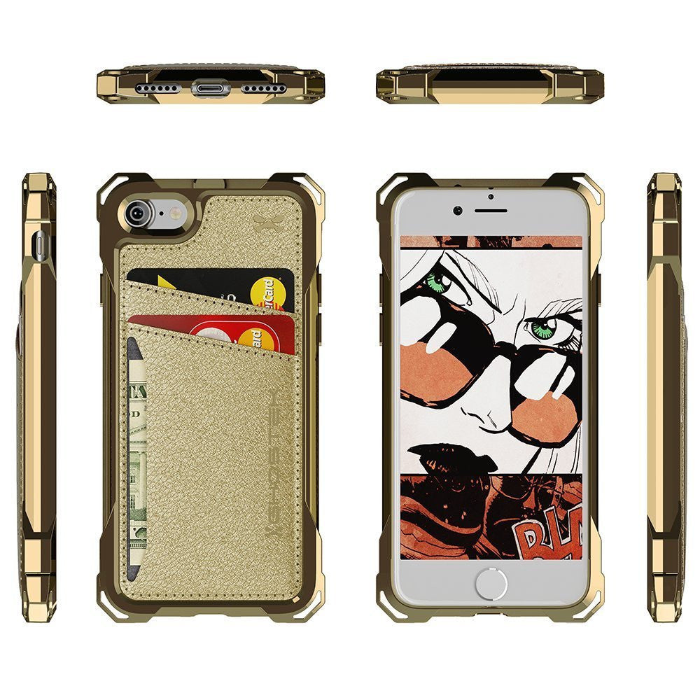 iPhone 7 Wallet Case, Ghostek Exec Gold Series | Slim Armor Hybrid Impact Bumper | TPU PU Leather Credit Card Slot Holder Sleeve Cover (Color in image: Gold)