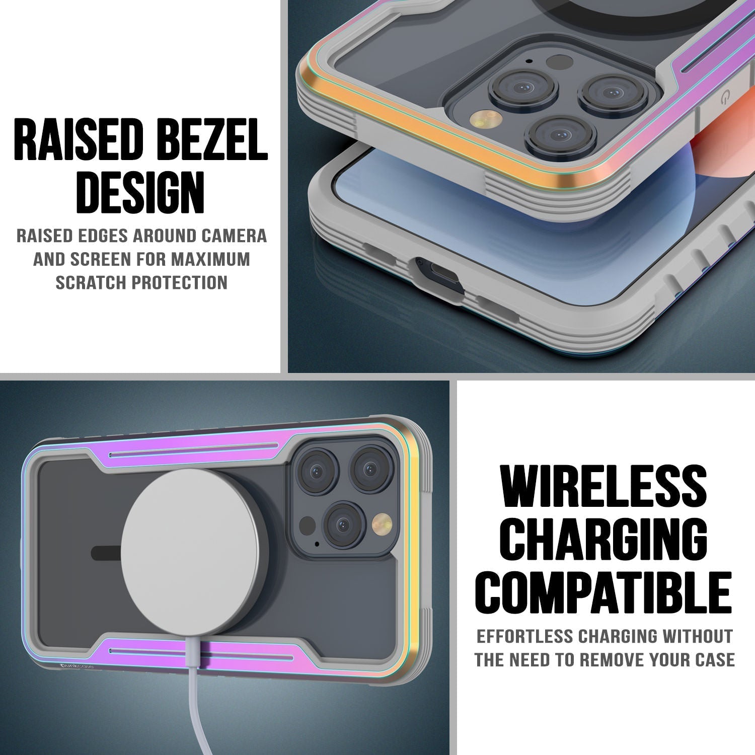 Funda Punkcase iPhone 15 Pro [Serie Defense Armor Stealth MAG] Cubierta ultra delgada y protectora de grado militar con múltiples capas y marco de aluminio [Clear Back] máxima protección contra caídas para tu iPhone 15 Pro (6.1") (2023) (Arcoíris)