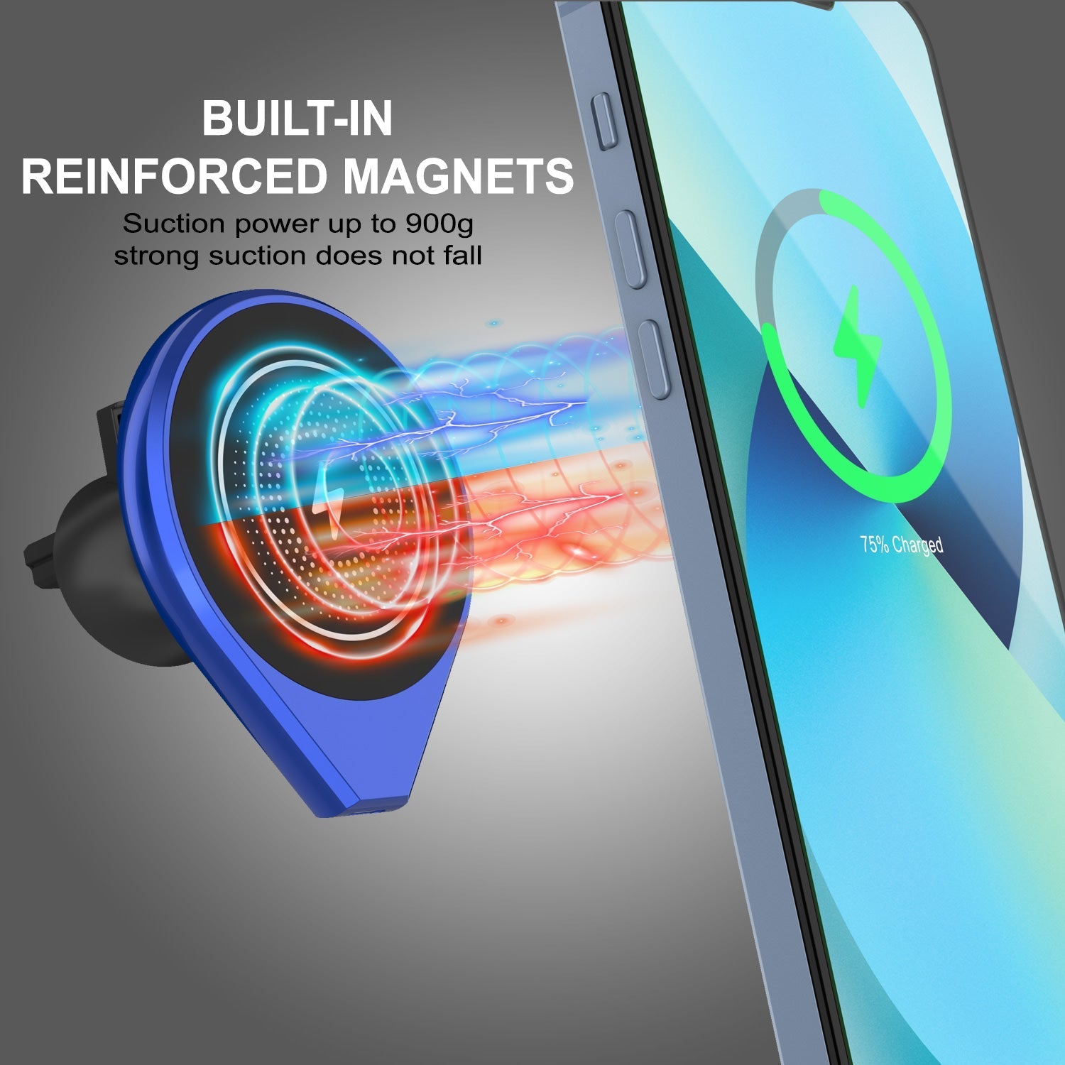 Cargador inalámbrico para coche Punkcase [Serie F8] Cargador rápido universal de 15W para rejilla de ventilación | Soporte magnético potente para iPhone, Galaxy y la mayoría de los dispositivos compatibles con Qi | Seguro, fuerte y seguro